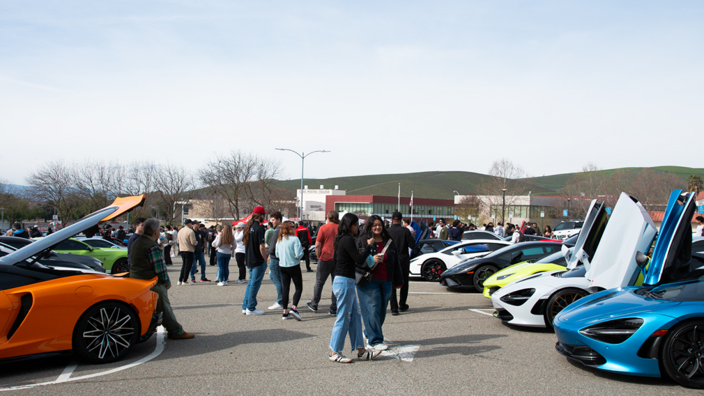 The sound of engines revving and the scent of gasoline dominated the parking lots at the face of campus.