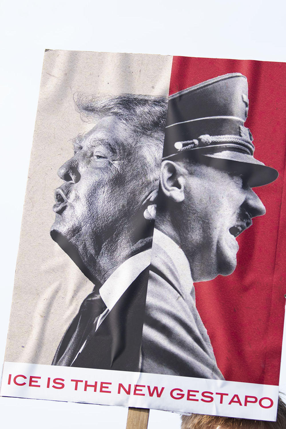 A sign reads “ICE IS THE NEW GESTAPO.” (Photo by Ian Kapsalis/The Express)